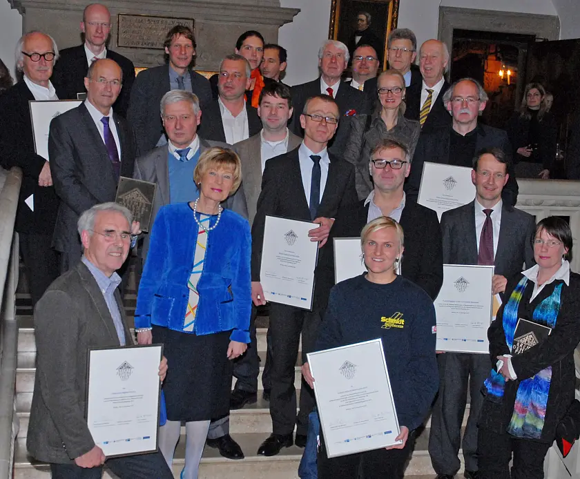 Der Vorsitzende der achtköpfigen Jury, Herr Professor Udo Mainzer, ehemaliger Landeskonservator des Rheinlandes, berichtete über die schöne aber auch herausfordernde Aufgabe der Jury, aus 45 Bewerbungen die Besten zu ermitteln. Landeskonservator Professor Georg Skalecki stellte in seiner Laudatio die einzelnen Preisträger vor: