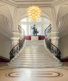 Besichtigungsroute: Nach dem Sammeln im Foyer werden das Neue Rathaus mit Wandelhalle ("Marmoretage"), der Senatssaal, der Kaminsaal mit Gobelinzimmer und der Festsaal sowie die Obere Halle des Alten Rathauses von 1405 besichtigt.